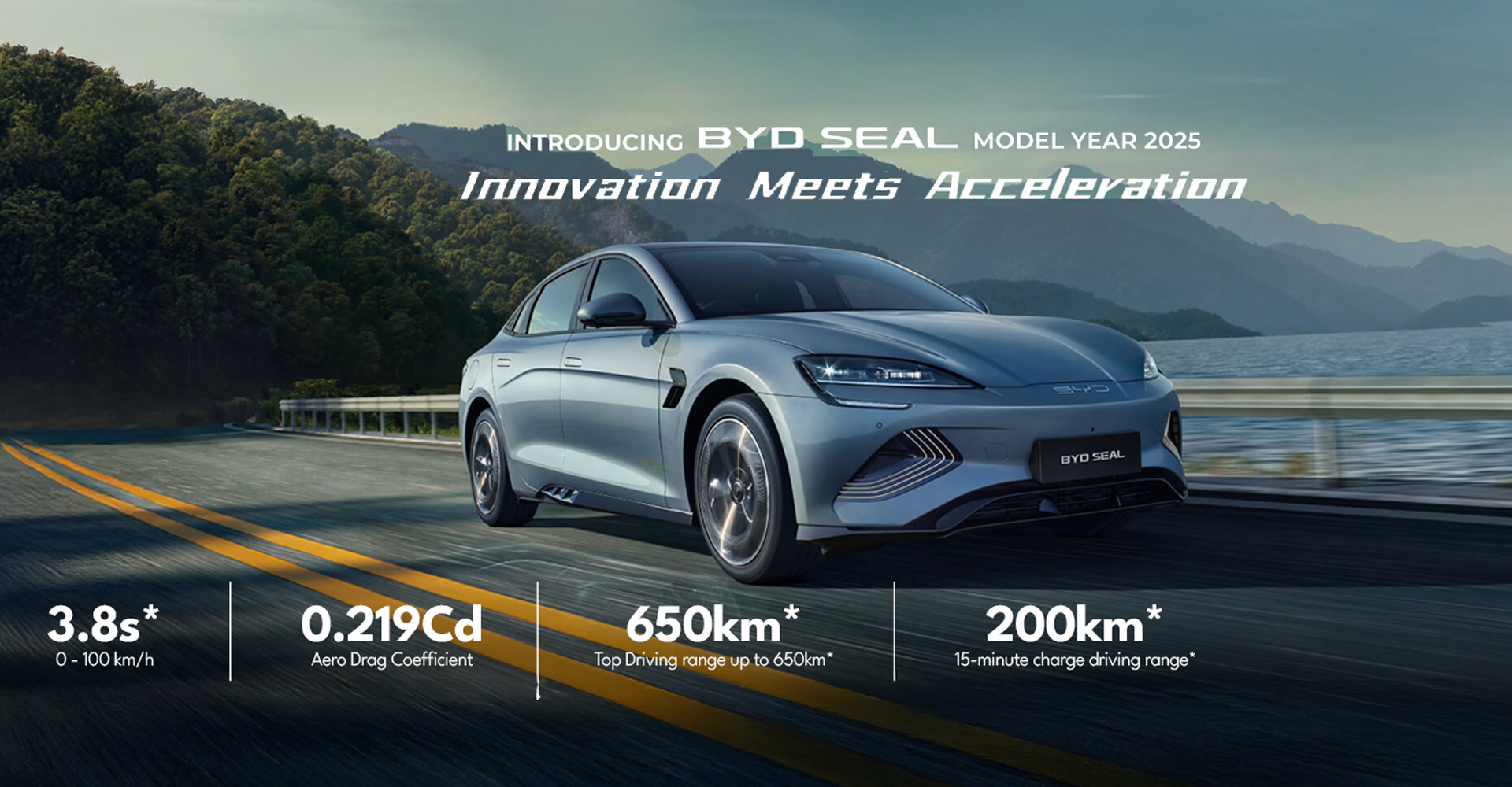 The BYD Seal range stands between 510 km* and 650 km* based on the variant and its top speed.